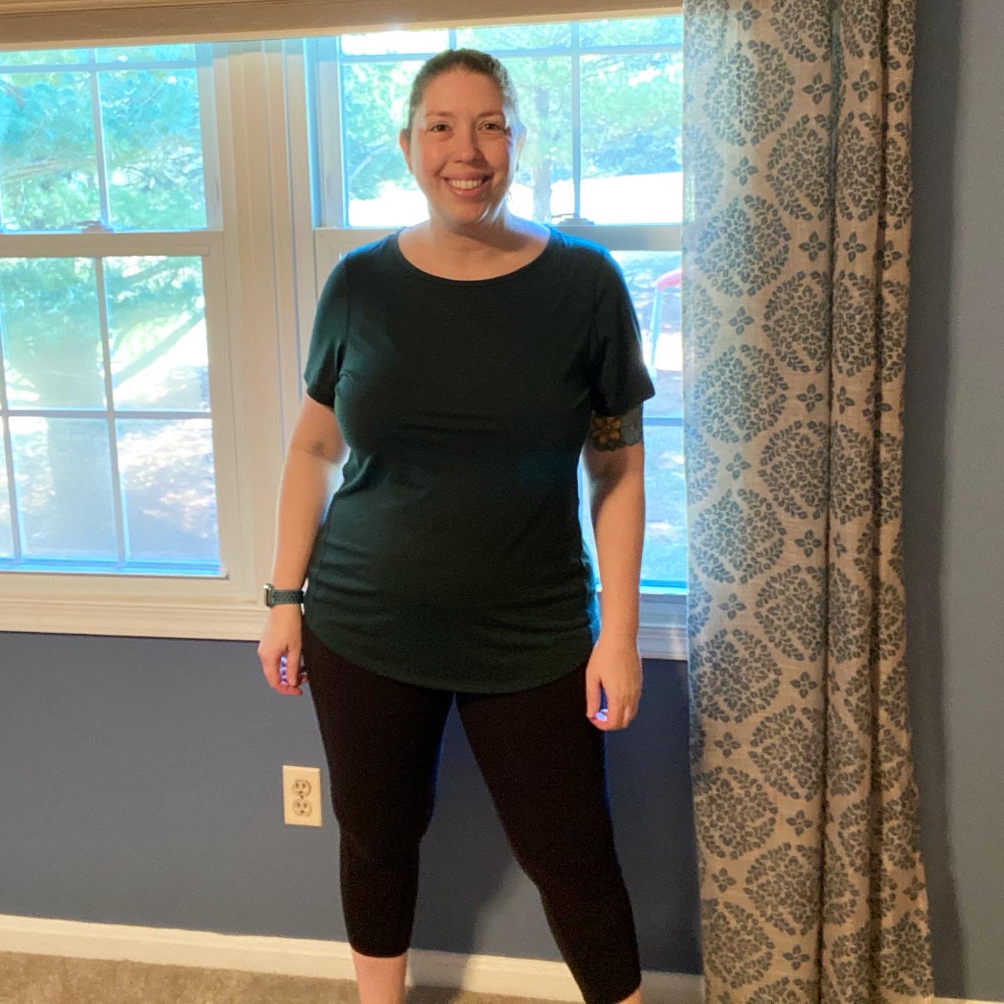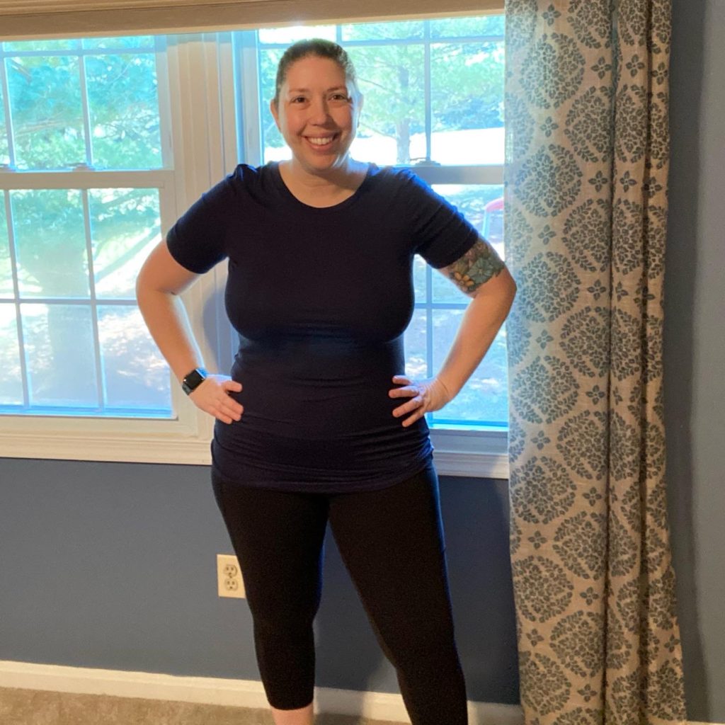 Once again, I would have preferred a v-neck option, but otherwise this tee is fine. I like the color, the fit is okay… it’s just a basic t-shirt. This one will most likely be added to my workout clothes drawer. While I prefer sleeveless tops for indoor cycling, this one would be useful for a yoga workout or outdoor walk.